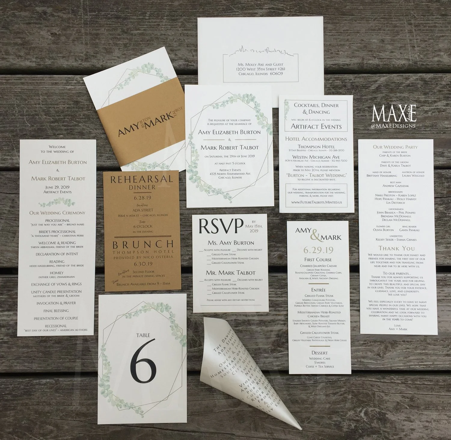 Everything is made just for you, based on your specifications, and will never be used again for another couple. When we first met with her to come up with designs, she showed us her previous work.